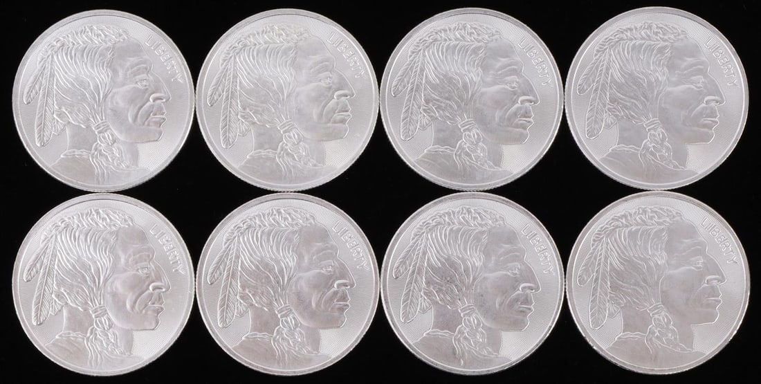 Sold9 BU 1ozt Silver RoundsNative American / Buffalo Rounds. .999 Fine Silver. 9 ozt. total weightSee Sold Price