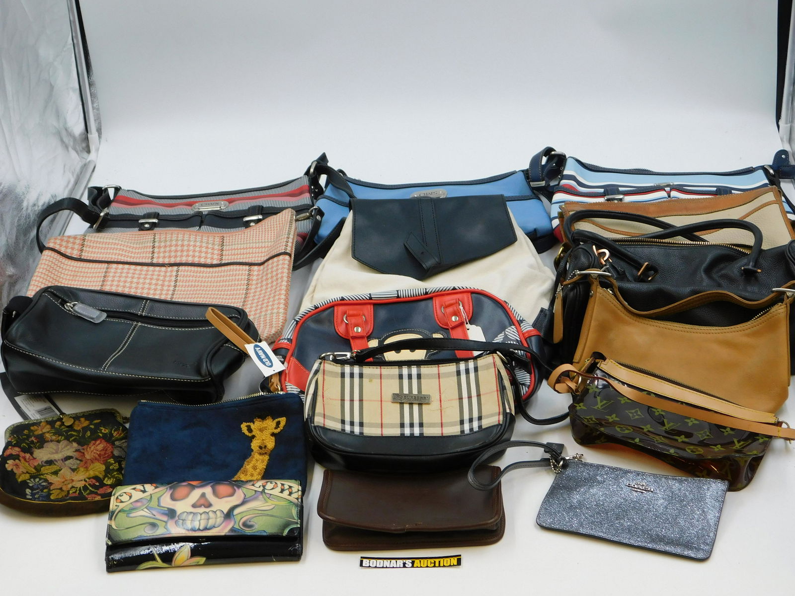 ASSORTED LADIES PURSES LOT OF 56 days LeftDesigner Wallet Lot – Coach, Agnès b., etc.2 days LeftBurberry Designer Accessories and Collectibles Assortment – Estate Lot2 days LeftLot of Vintage Purse3 days LeftLot of Ladies Hats & Purses2 days LeftMassive lot of pursesMar 25, 2026Kenzo, Hanae Mori, Salvatore Ferragamo, Fendi/Bulgari Dior etc. Keyrings/CharmsMar 18, 2026Celine, Christian Dior, and YSL Collection of 15 Designer Handkerchiefs and ScarvesApr 01, 2026Vintage Italian Glasses Lot Inc. Solargenics, Wellling Gold Frame, Cool Ray, Luxottica and Hand BagsMar 16, 2026Salvatore Ferragamo Gucci Burberry 4 Piece Shoulder Bag Set Black BeigeMar 10, 2026Set of 5 Black Leather Shoulder Bags Burberrys Chloe Cartier Fendi BALLY2 days LeftA Collection of Accessoreis19 hrs LeftSet of Six Gucci GG Canvas and Leather Shoulder Bags Beige Black Navy5 days LeftLadies Evening Bags Clutch Bags Beaded Bags Vanity Bags (12)Mar 28, 2026ASSORTED WOMENS BAGS4 days LeftSet of 4 Leather Bags CHANEL Fendi Bally Lanvin Red Gold BlackMar 12, 2026