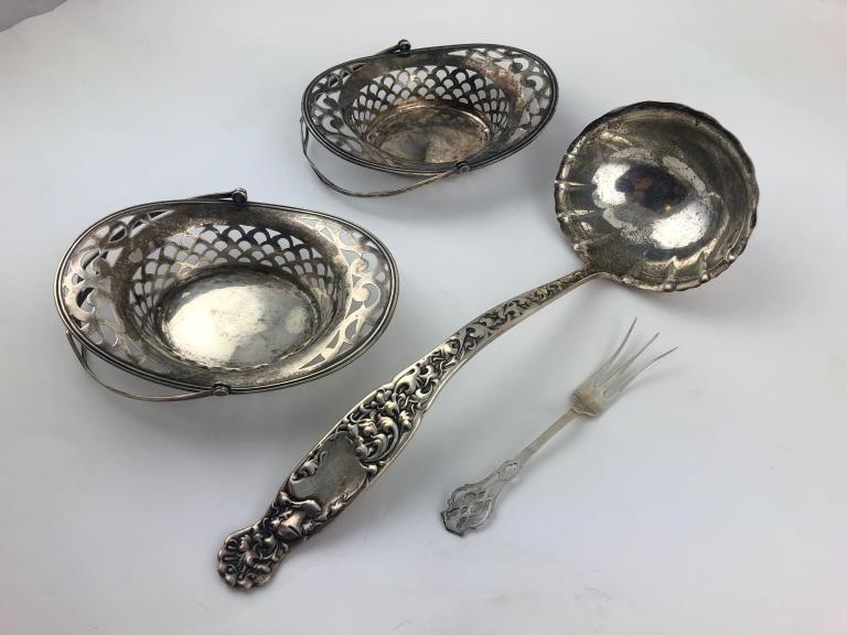 Lot Sterling Silver Pierced Baskets & 2 Serv. Pcs