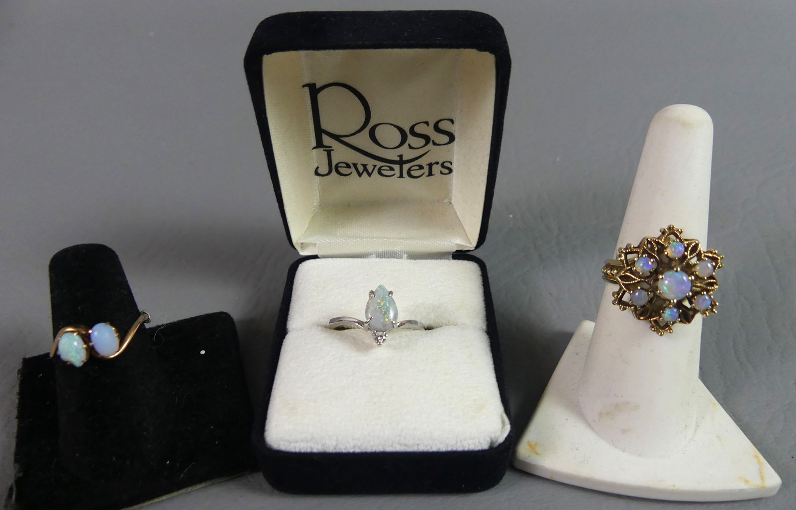 LOT THREE OPAL AND GOLD RINGS