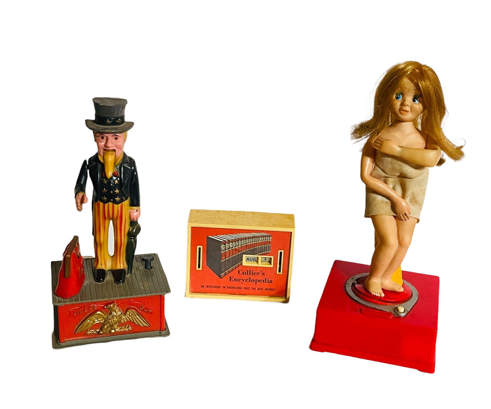 VINTAGE TOY LOTMar 07, 2026Lot of Three American Glass Candy ContainersMar 14, 2026Lot of Three American Cast Iron BanksMar 14, 2026ASSORTED CHILDREN'S TOYS / ARTICLES, LOT OF SIXMar 05, 2026ASSORTED VINTAGE GERMAN TIN LITHOGRAPH MECHANICAL TOYS, LOT OF TWOMar 05, 2026ASSORTED WOODEN AND LITHOGRAPHED CHILDREN'S TOYS / GAMES, UNCOUNTED LOTMar 05, 2026FOLK ART CARVED WOODEN TAKAAN ANIMAL PAPIER-MACHE MOLDS, LOT OF THREEMar 06, 2026AMERICAN FOLK ART CARVED AND PAINTED WHIRLIGIG / JIG DANCERS, LOT OF TWOMar 06, 2026FOLK ART CARVED WOODEN TAKAAN CHRISTMAS AND THANKSGIVING PAPIER-MACHE MOLDS, LOT OF THREEMar 06, 2026UNCLE SAM PIPES7 days LeftTHREE AUTOMOTIVE THEME CELLULOID TOYS6 days LeftTin Toys & Banks7 days Left1950s-1960s Mechanical and Still Banks20 hrs LeftTHREE VINTAGE IRON MECHANICAL COIN BANK TOYSMar 01, 2026A Trio of Cast Iron Mechanical Banks including Punch and Judy5 days Left4 American Mechanical Money BanksMar 14, 2026