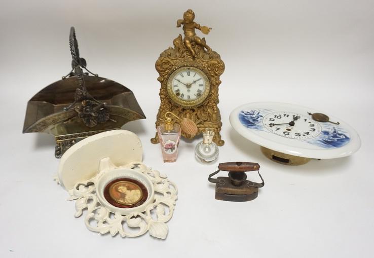 LOT W/CLOCK, VICTORIAN SILVERPLATED BASKET