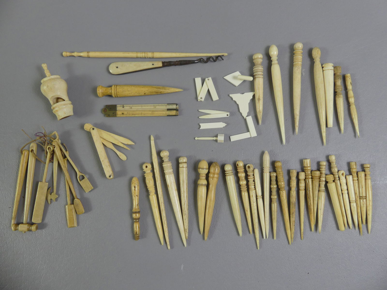 LOT WHALE BONE TOOLS, FIDS, ETC