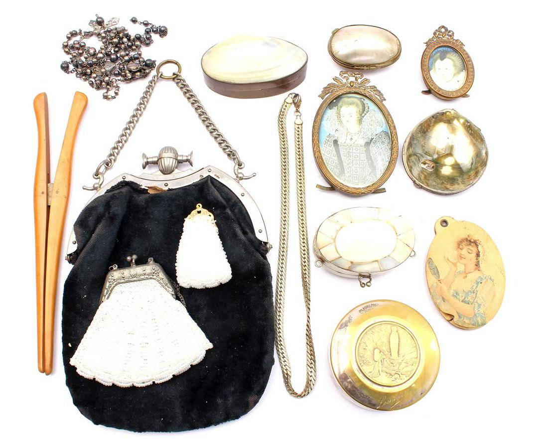 Lot With 4 Shell Boxes, 2 Oval Copper Bow Frames,