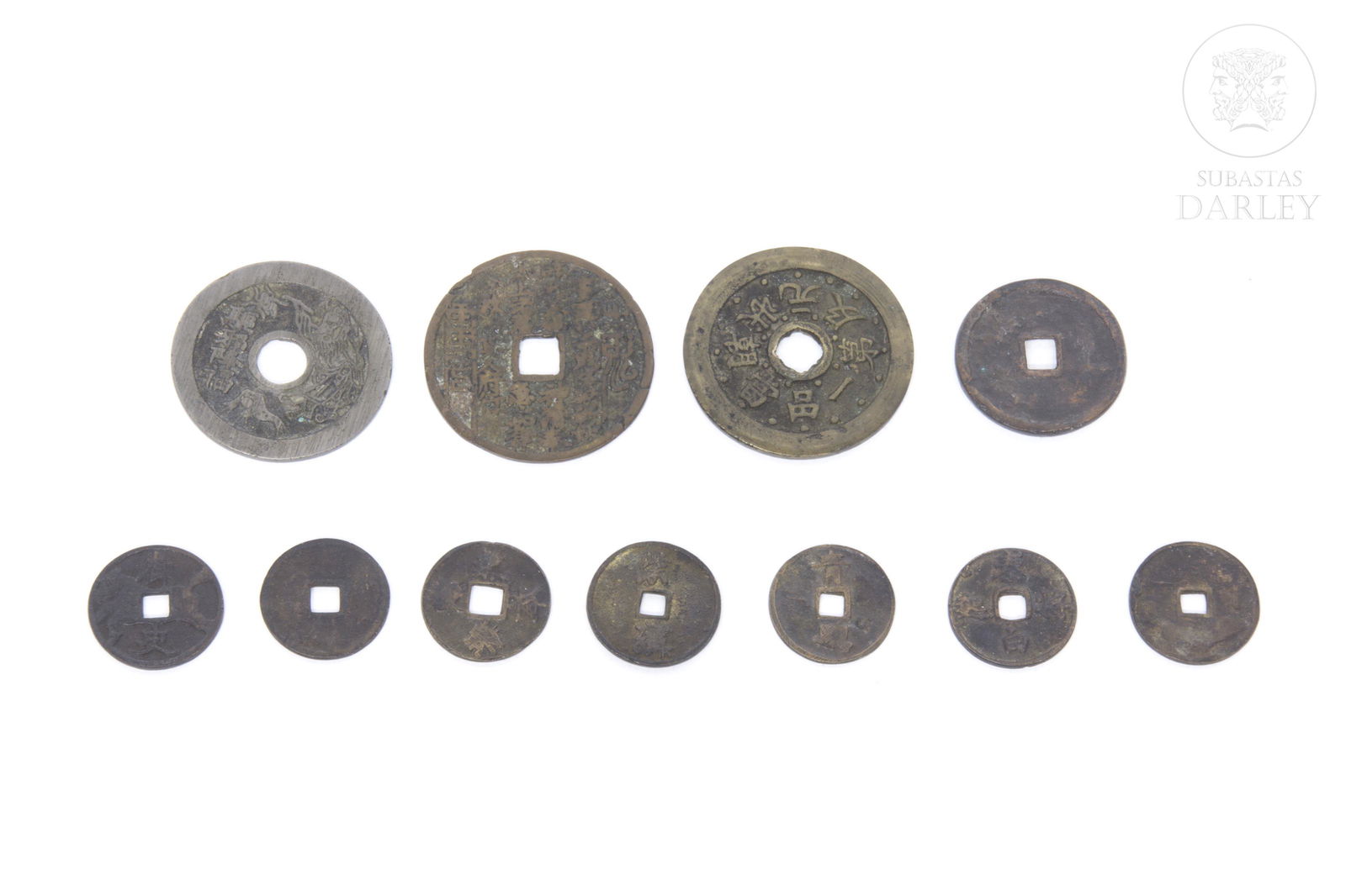 Lote de 11 réplicas de monedas chinas.