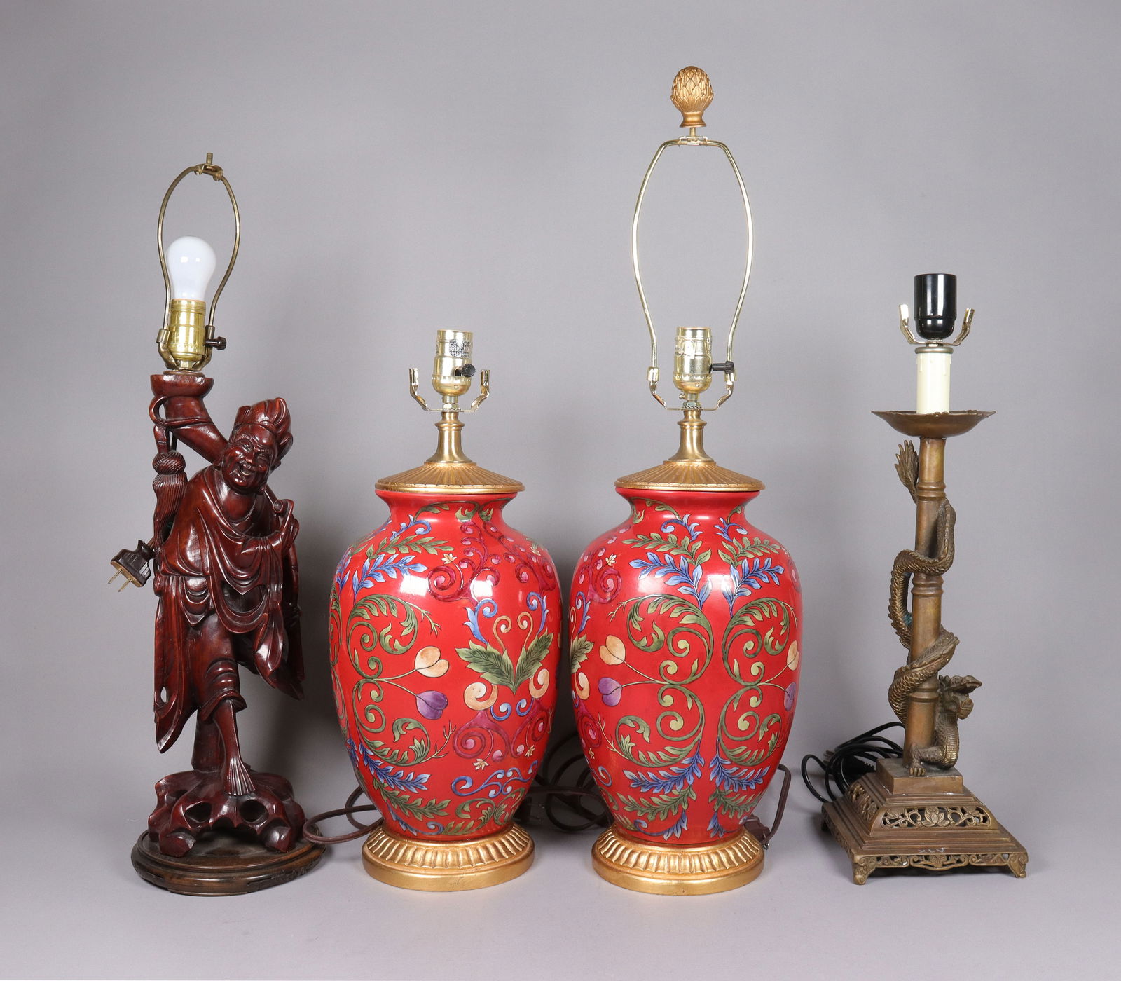 3 Asian Porcelain Table Lamps on Wood Bases