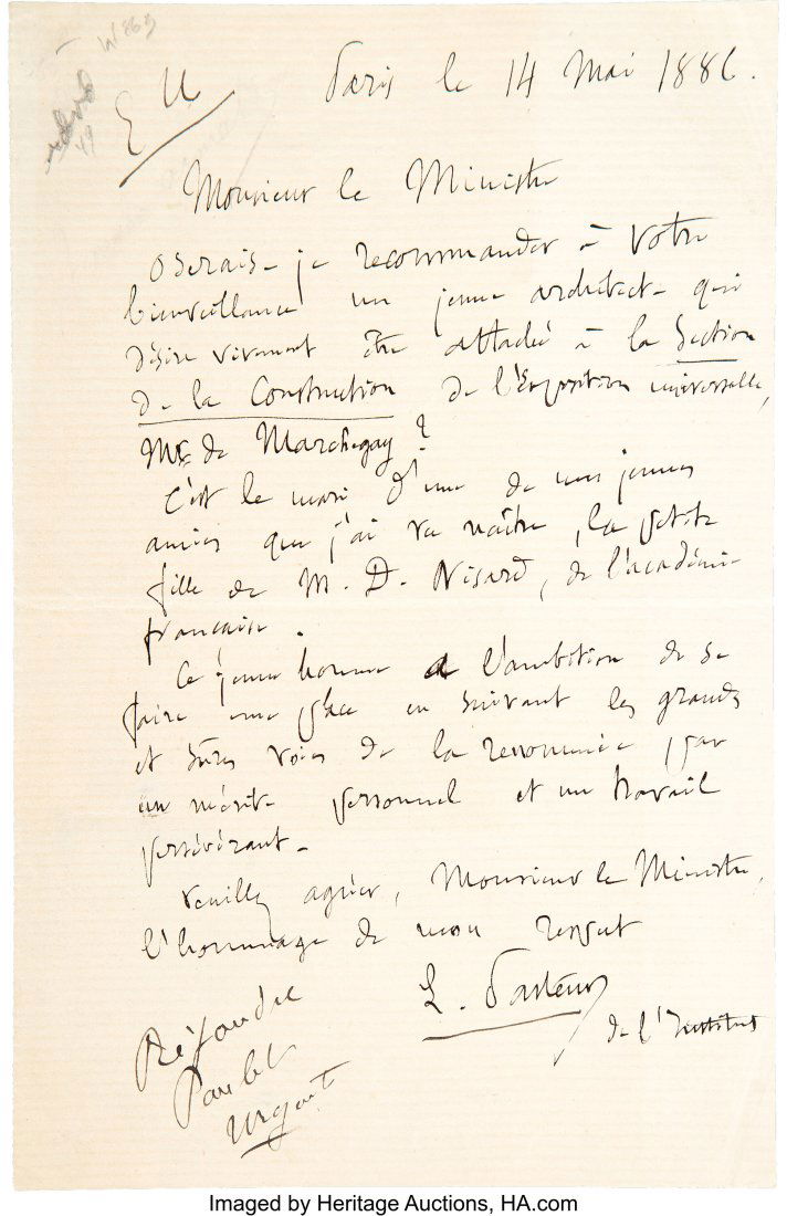 Louis Pasteur Autograph Letter Signed. One page