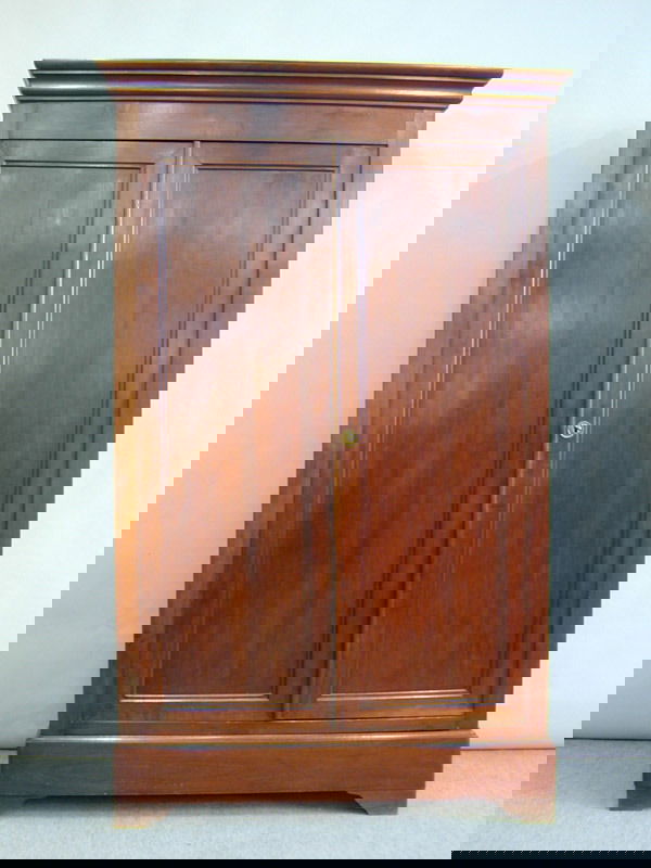 SoldFRENCH LOUIS PHILIPPE ARMOIRELouis Philippe walnut armoire, France, mid 19thc.,, a protruding cornice over two doors opening to shelves and two drawers, rising on stepped bracket feet, 80"h, 47"w, 24"d Start Price: $300.00See Sold Price