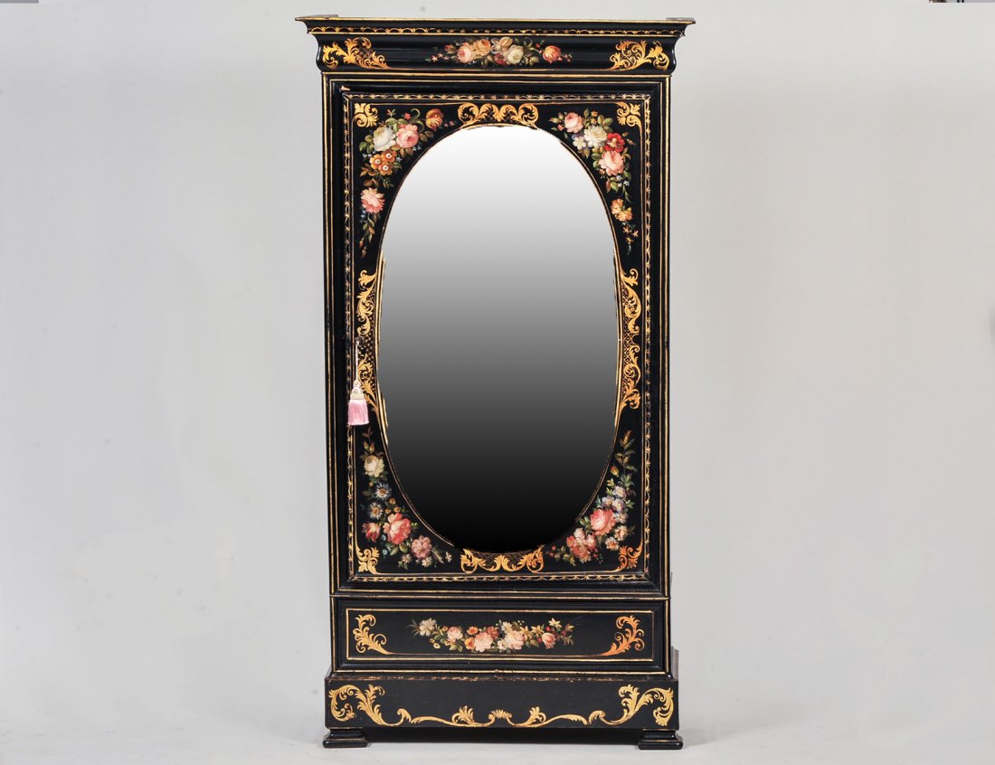 LOUIS PHILIPPE FLORA PAINTED PARCEL GILT BLACK LACQUER