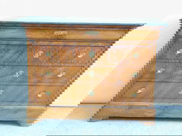 SoldLouis Philippe Style Walnut Marble Top ChestFrench Louis Philippe Style Walnut Marble Top Chest - 39.5 inches tall x 51 x 23.5See Sold Price