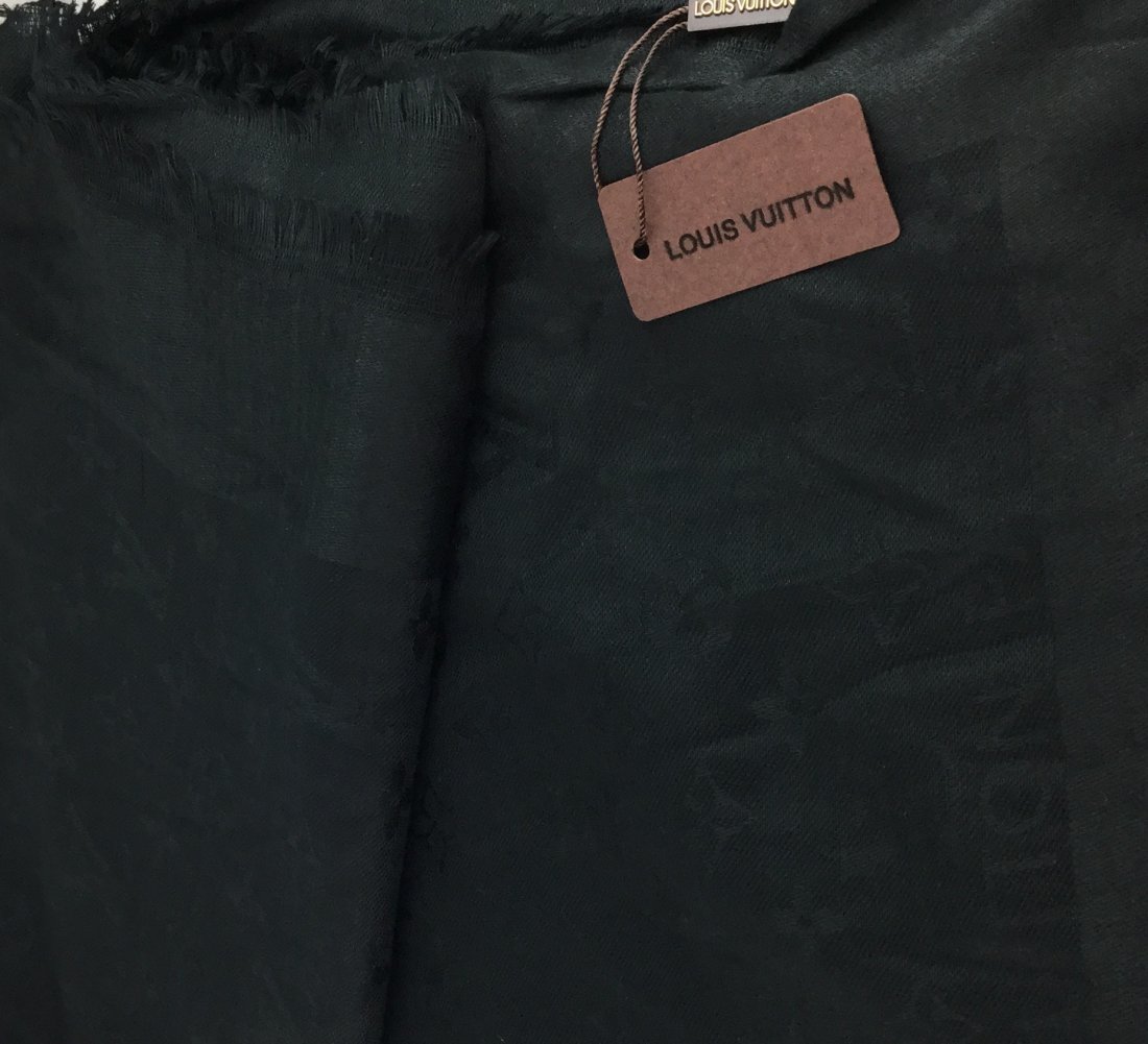 LOUIS VUITTON Black Silk Monogram Scarf