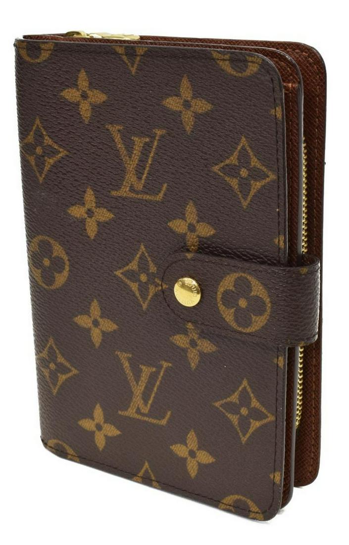 SoldLOUIS VUITTON MONOGRAM CANVAS COMPACT WALLETAUTHENTIC LOUIS VUITTON MONOGRAM CANVAS COMPACT WALLET FEATURING THE ICONIC LV MONOGRAM PRINT ON DURABLE COATED CANVAS. THE INTERIOR IS CRAFTED IN RICH BROWN LEATHER WITH A TEXTURED FINISH AND INCLUDESee Sold Price