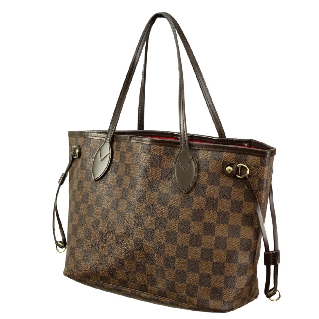 Louis Vuitton Damier Ebene Neverfull PM Brown Leather Tote Bag