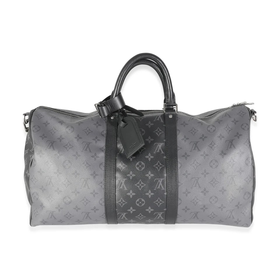 SoldLV Duffle Bag Keepall 50 Monogram Eclipse SplitLouis Vuitton Keepall Bandouliere Monogram Eclipse Outdoor Split 50 Black/silver. In like new condition with LV lock and pair of keys. Measures 19.68 x 11.41 x 9.05 inches (50cmx29cmx23cm)See Sold Price