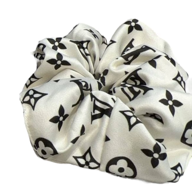 Louis Vuitton Lg White/Black Monogram Beaute Hair Scrunchy & Original Gift Bag