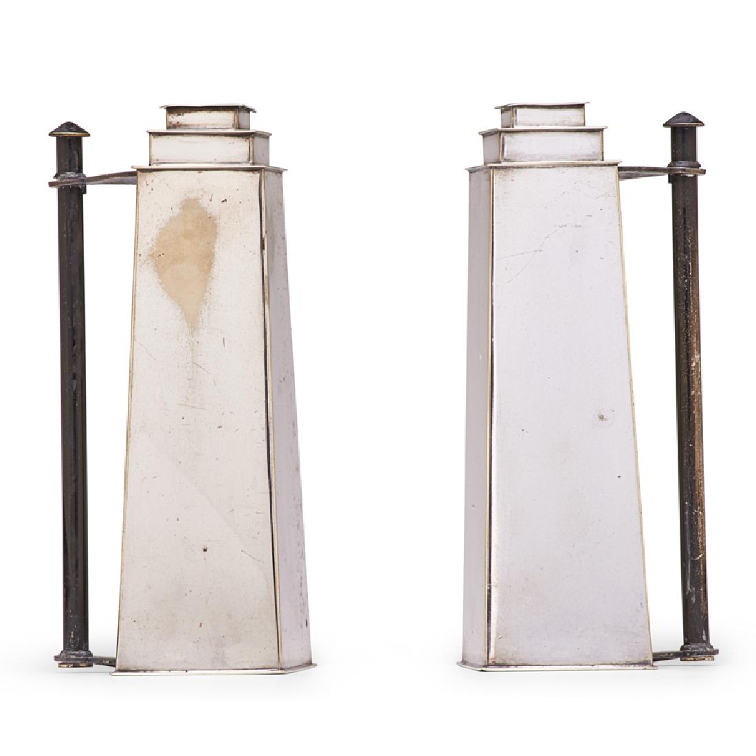 LOUIS W. RICE Two Skyscraper candlesticks