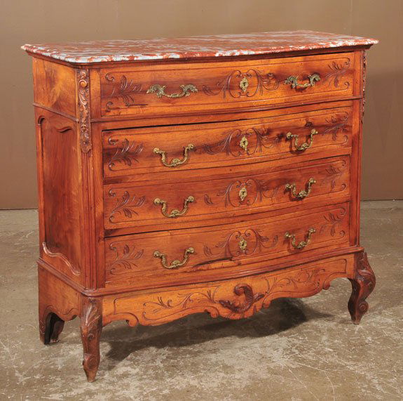 Louis XV marble top walnut serpentine front commod