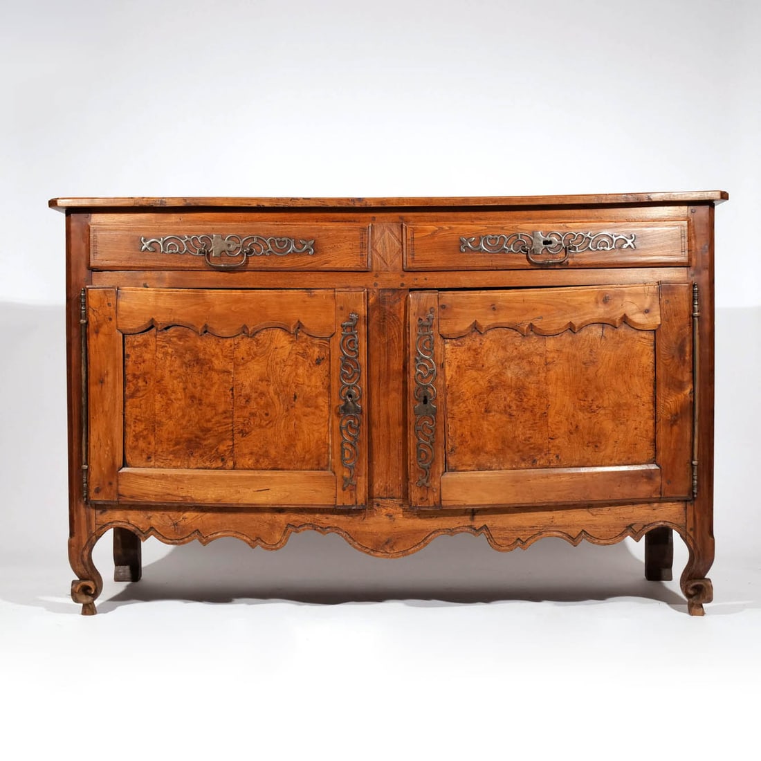 SoldProvincial Louis XV Buffet19th century, French. Carved walnut with iron mounts. 58"L x 23 1/4"D x 53"HSee Sold Price