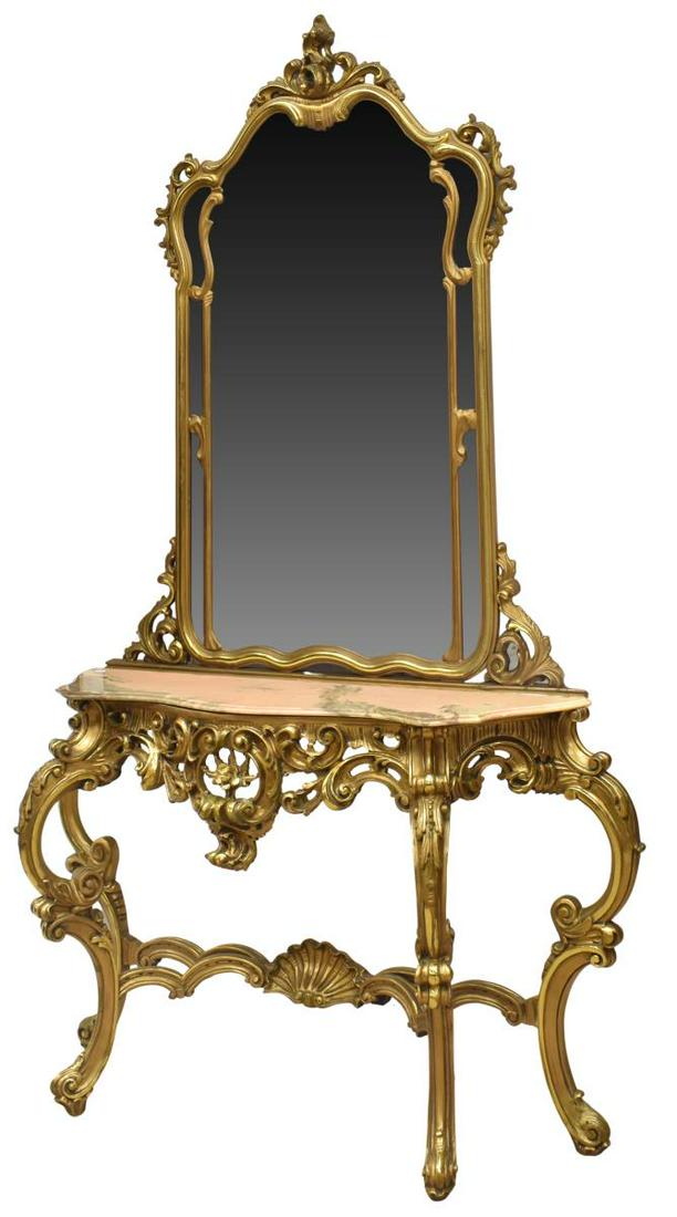 LOUIS XV STYLE GILT CONSOLE TABLE & MIRROR