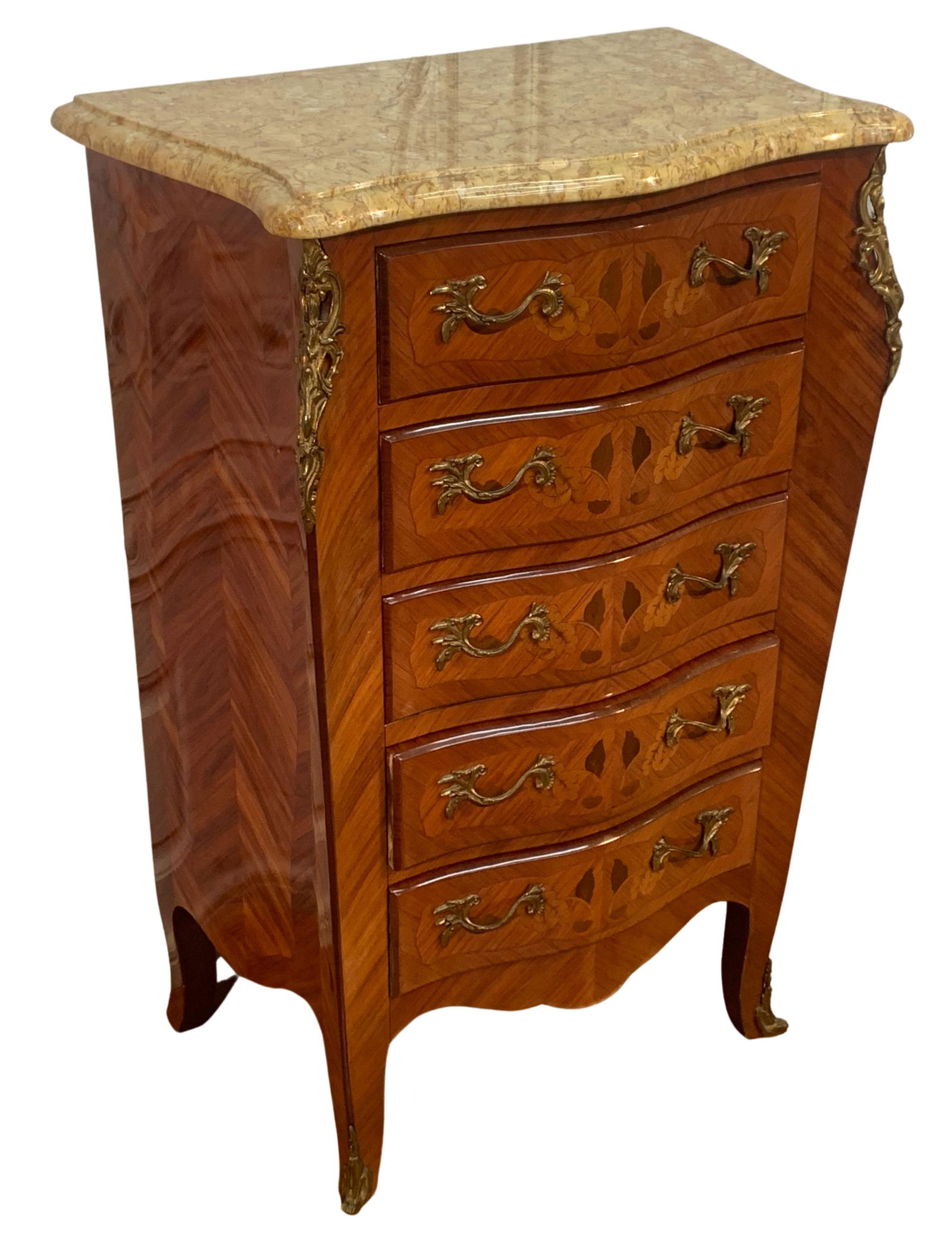 LOUIS XV STYLE INLAID M/TOP COMMODE