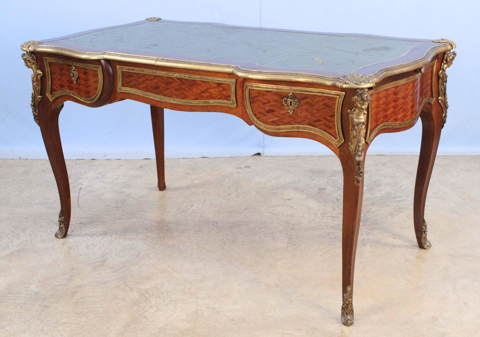 Louis XV Style Library Desk w/ Bronze Ormolu Decor