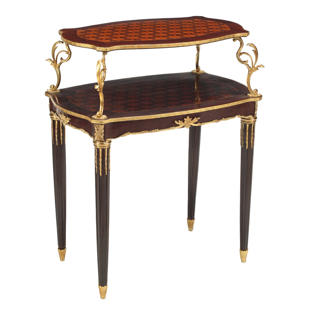 Louis XV Style Marquetry Two Tier Serving Table
