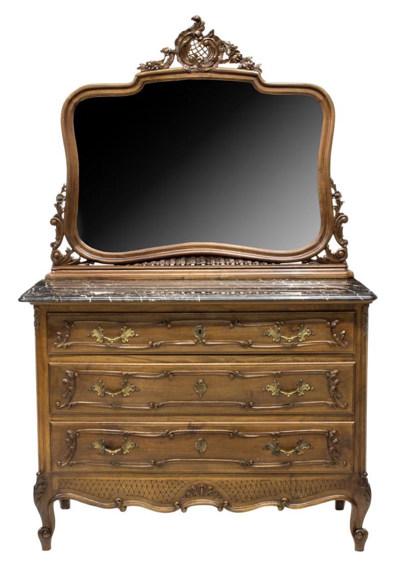 LOUIS XV STYLE MIRRORED MARBLE TOP COMMODE