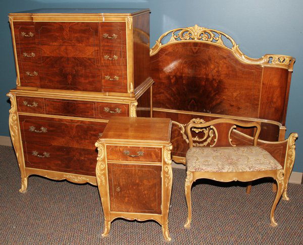 LOUIS XV STYLE PAINTED WALNUT BEDROOM SET