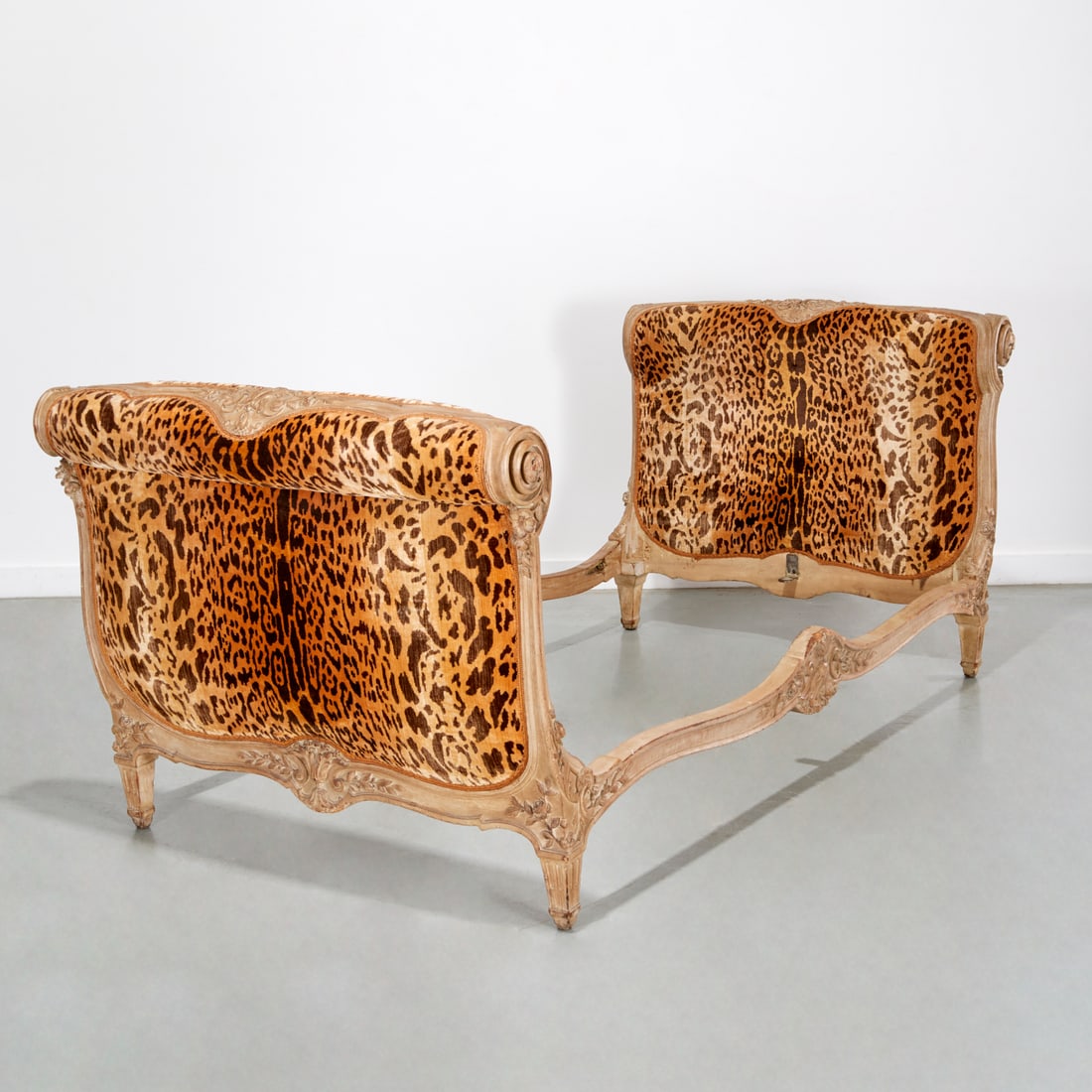 SoldPair Louis XV style caned daybedsearly 20th century; serpentine crest rail with shell carved motif, cabriole legs, carved bed rails, 37 7/8 in. H., 39 1/4 in. W.,See Sold Price