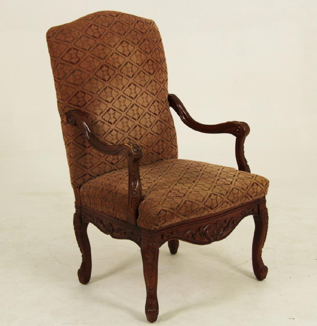 PAIR OF LOUIS XV STYLE CARVED WALNUT BERGERE CHAIRS WITH VELVET UPHOLSTERY C 1900.5 days LeftFrench Louis XV Style Antique Club Armchair with Gilt and Painted Frame2 days LeftPair of Provincial Louis XV-Style FauteuilsMar 29, 2026Louis XV-Style Stained Fruitwood Duchesse BriseeMar 29, 2026Louis XV Carved and Gilt Fauteuil, Attributed to Pierre BrizardApr 09, 2026Louis XVI Style Walnut Open Arm Chair, Needlepoint Upholstery 1900, H 34" W 24"178 Lots AwayFRENCH LOUIS XVI STYLE CARVED GILTWOOD FAUTEUIL ARMCHAIR2 days LeftFrench Style Walnut Carved Chair and Half, Oyster White Upholstery 1940, H 32" W 28" Depth 25"188 Lots Away(5) PIECE WALNUT SUITE - NOGARET, LYONMar 30, 2026Louis XV Style Walnut Hand Carved Open Arm Child's Chair 19th.c., H 25" W 15"179 Lots AwayGEORGE III STYLE CARVED MAHOGANY ARMCHAIR IN DAMASK2 days LeftChinese Chippendale Open Arm Library Chair Brown Damask Upholstery2 days LeftVictorian Rococo JH Belter Carved Rosewood Slipper Chair c18702 days LeftNINETEENTH CENTURY FRENCH RESTORATION MAHOGANY BERGERE CHAIR WITH VERY NICE FABRIC.5 days LeftLate 19th C. French Walnut Louis XV Petite Chaise a la ReineMar 28, 2026A Continental Baroque stained walnut armchair, late 17th century with alterationsApr 01, 2026