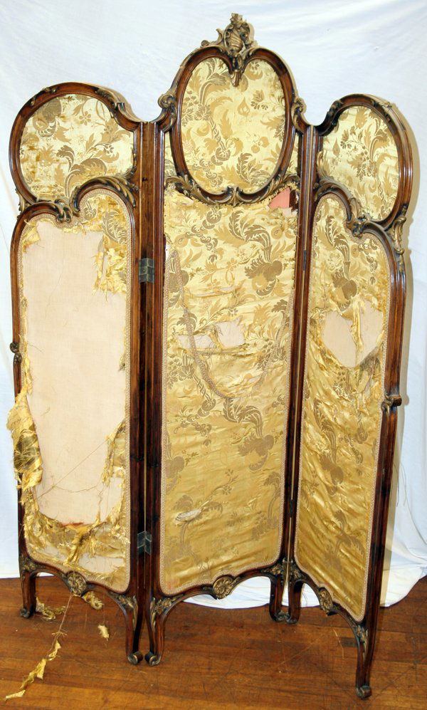 LOUIS XV STYLE WALNUT 3-PANEL DRESSING SCREEN