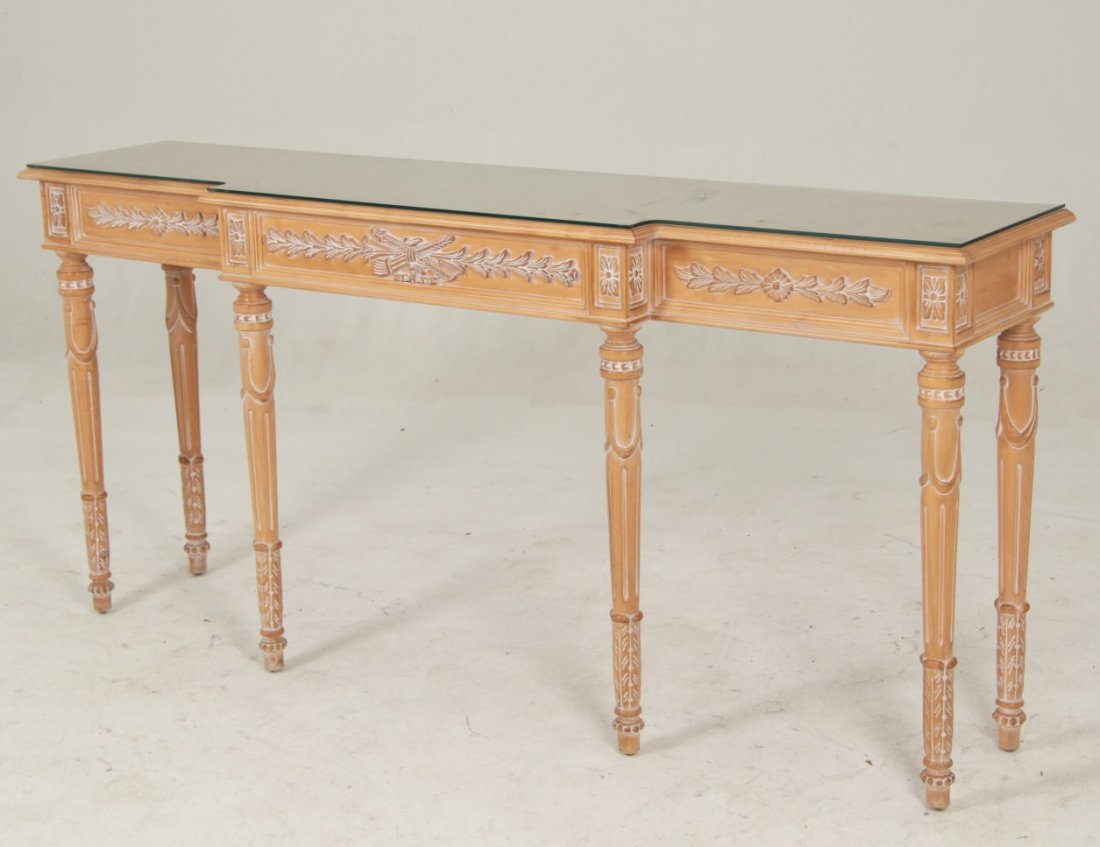 LOUIS XVI STYLE CARVED PICKLED PINE CONSOLE