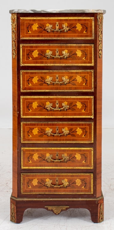 Louis XV Style Marquetry Bombe Commode19 hrs LeftLouis XV Style Small Side Table with ,Faux Book panel19 hrs LeftLouis XV Style Marble Top Marquetry Commode19 hrs LeftNapoleon III Style Cabinet19 hrs LeftLouis XV/XVI Transitional-Style Marquetry Inlaid Demilune Cabinet1 day LeftLouis XV Style Marquetry Inlaid Brass Bound DeskLOUIS XV STYLE BRZ MTD M/T SEMAINIERMar 07, 2026A LOUIS XV ORMOLU-MOUNTED PARQUETRY SERPENTINE COMMODE, BY JACQUES DUBOIS, CIRCA 17506 days LeftItalian Napoleon III Style Marquetry SemainierMar 14, 2026A Louis XV Style Marble Top Gilt Bronze and Mahogany Secr?taire ? abattant Fall Front Desk23 hrs LeftFrench Louis XVI Style Chest w/ Gallery Rail.3 days LeftLouis XV Style Marble Top Gilt Bronze Tulipwood CommodeMar 12, 2026Louis XV Style Ormolu & Kingwood Bookcase, 19th C.Apr 07, 2026Louis XVI Style Gilt Metal and Kingwood CommodeMar 05, 2026French Louis XV Style Marble Top Tall ChestMar 07, 2026Louis XV Style Inlaid Walnut Table en ChiffonierMar 12, 2026