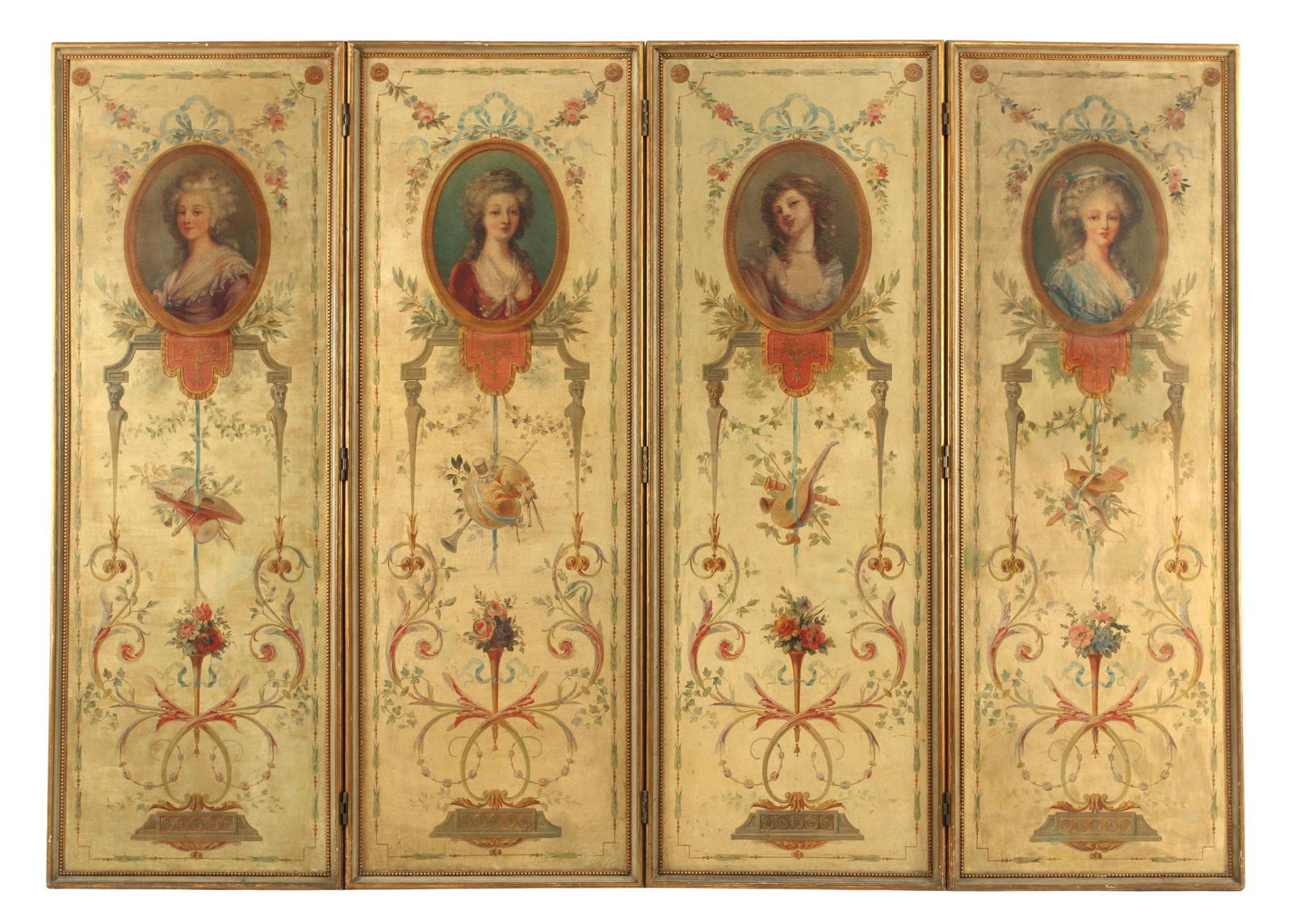 LOUIS XVI STYLE PAINT-DECORATED FOUR PANEL SCREEN