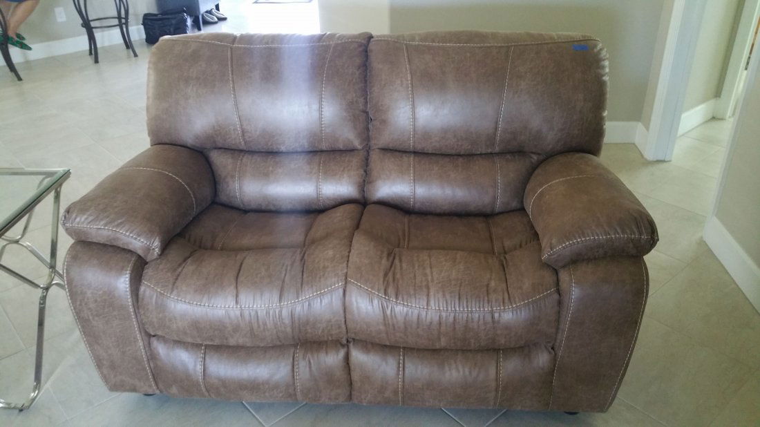 SoldLoveseat Leather Sofa, Natuzzi-StyleQuality Italian leather couch in a mahogany color, does not have labels but is either a Natuzzi and definitely a Natuzzi-style. It has loose pillows with soft, rolled arms and plush cushions (We alsoSee Sold Price