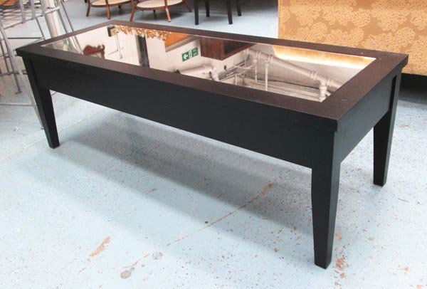 LOW TABLE, dark wood with a rectangular mirrored top,