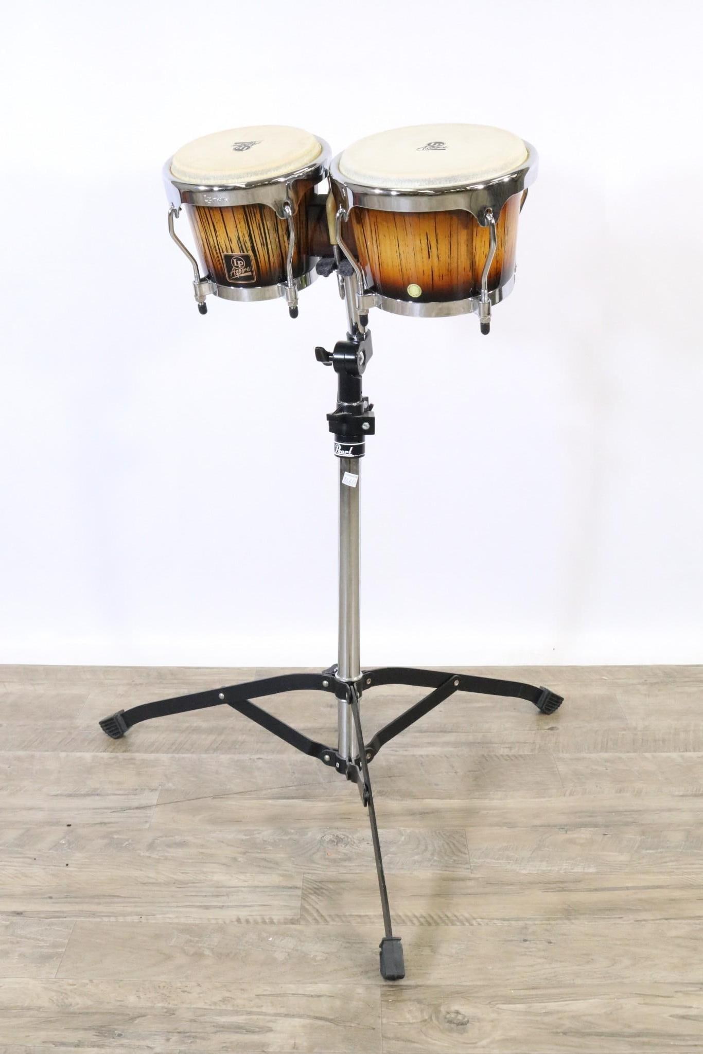SoldSET OF LP ASPIRE ACCENTS BONGOSOn metal stand. 45 1/4" h x 29" w x 12 1/2" d. $500 new.See Sold Price