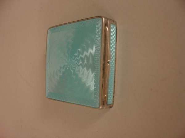 LT. BLUE GUILLOCHE ENAMEL & SILVER SQUARE COMPAC