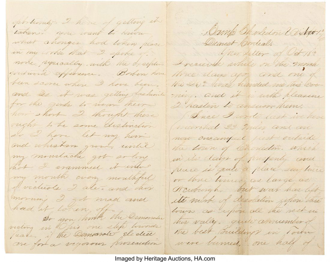 Poinsett, Other Noted Charlestonians Signed LetterMar 07, 2026Horace James Chaplain & Captain 25th Mass letters5 days LeftFreedmen's Bureau, Fugitive Slave Law, etc. Letters5 days LeftNathan Derby NH 6th Infantry letter, VA hospital, etc.5 days LeftNew Hampshire 12 page Civil War letter & others5 days LeftCaptain carries gun for struggling solder, & others5 days LeftCivil War Soldier's Letter by Martin Luther Moor1 day LeftDeath of William Youngblood Confederate Ephemera5 days LeftPA Civil War Letters: Prison Guard, Lieutenant , etc.5 days LeftCivil War Soldier's Letters (2) by Seneca Cowles1 day LeftCivil War Soldier's Letters (2) Recounting the D1 day Left1864 Discussion of Harper's Ferry destruction, etc.5 days Left1861 Harper's Ferry related Civil War Letters5 days LeftCapt Arthur T. Wilcox 7th OH Harper's Ferry related5 days LeftG.W. Aughenbaugh Letters - Deserters coming, etc.5 days LeftF.P. Crossman to State Rep. from Hospital5 days Left