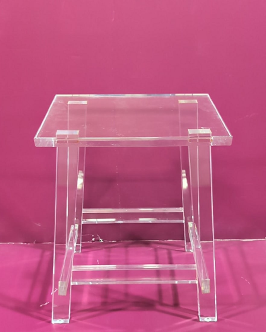 MODERNIST Side Table1970sLucite, unmarkedheight 21in; width 27 3/4in; depth 27 3/4inMODERNIST Sculptural Side Table1970sLucite, glass, unmarkedheight 21 1/8in; depth 24in; width 24inBRUTALIST End Table1970sLucite, beveled glass top, unmarkedheight 18in; width 24in; depth 23 3/4inLES PRISMATIQUES (ACTIVE 1970S-1990S) Coffee Table1970sLucite, glass, mark 'Les Primatiques' and...LION IN FROST (ACTIVE 1960S-1970S) Lucite Coffee Table1970sLucite, glass, base signed 'Lion in F...MODERNIST Side Table1970sLucite, glass, unmarkedheight 22 1/4in; total width 27 1/4in; total dep...Antique clear glass cake pedestal stand.4 days LeftMid-century Lucite & Glass Round Dining Table by Charles Hollis JonesGeoffrey Bradfield , Custom Lucite Center Table14 hrs LeftModern Lucite Waterfall Side TableMay 07, 2026Butler Modern Minimalist Clear Acrylic Console Table 30H 32W 14DMar 14, 2026Geoffrey Bradfield, Custom Lucite Console Table14 hrs LeftPace Style Modern Glass Top Lucite Dining TableMar 26, 2026Modern Glass Top and Acrylic Base Table H 29" W 44" L 44"Mar 20, 2026MODERN SIDE TABLEPostmodern Black and Clear Acrylic PedestalMay 07, 2026