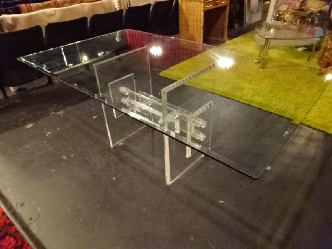 LUCITE DINING TABLE, CLEAR LUCITE PANELS JOINED BY STRE