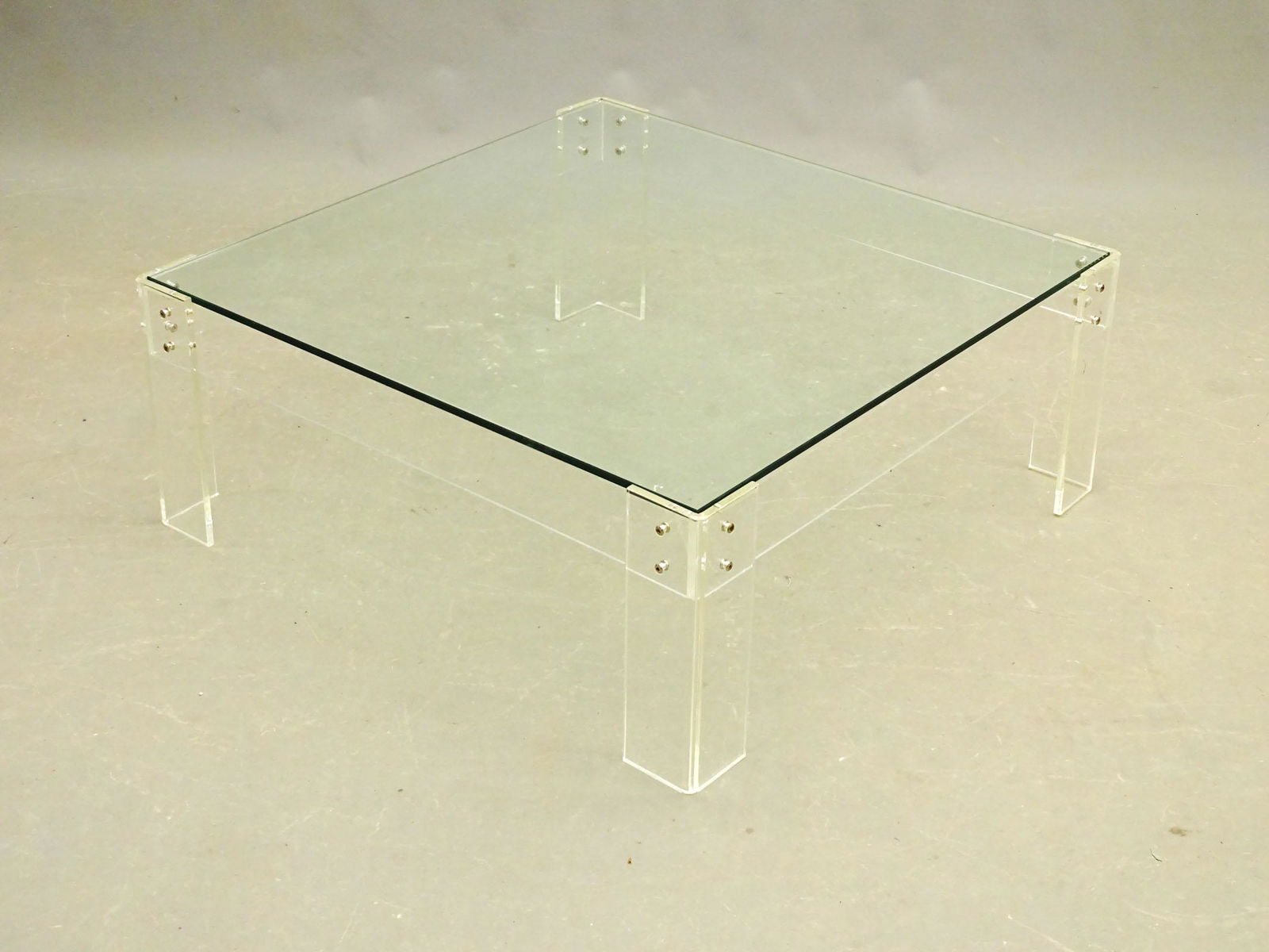 MODERNIST Sculptural Side Table1970sLucite, glass, unmarkedheight 21 1/8in; depth 24in; width 24inLES PRISMATIQUES (ACTIVE 1970S-1990S) Coffee Table1970sLucite, glass, mark 'Les Primatiques' and...BRUTALIST End Table1970sLucite, beveled glass top, unmarkedheight 18in; width 24in; depth 23 3/4inLION IN FROST (ACTIVE 1960S-1970S) Lucite Coffee Table1970sLucite, glass, base signed 'Lion in F...MODERNIST Side Table1970sLucite, glass, unmarkedheight 22 1/4in; total width 27 1/4in; total dep...Postmodern Ice Crystal Lucite Base with Beveled Glass Top Coffee TableMCM Fritz Hansen Style Beveled Glass Top Coffee TableMid-century Lucite & Glass Round Dining Table by Charles Hollis JonesA GLASS TOP COFFEE TABLE RESTING ON LUCITE PEDESTALS C 1985.13 hrs LeftMilo Baughman, Coffee Table4 days LeftWalter Lamb, Coffee Table4 days LeftMARCO ZANUSO COFFEE TABLEMar 06, 2026Mid-Century Modern Glass Top Brass Coffee TableApr 14, 2026Mies van der Rohe Barcelona Coffee TableMar 26, 2026Howard Meister, Coffee table12 hrs LeftSTEEL, BRASS AND LUCITE END TABLE HAVING GLASS TOPS C 1975.13 hrs Left