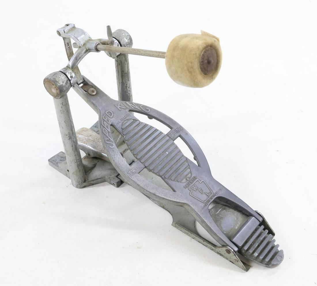 SoldTYMPANI DRUM & CYMBAL ON STANDPedal Drum by WFL Drum Co of Chicago (AKA Ludwig), copper bowl with painted art deco base, PLUS late 20th c. brass cymbal on stand, unmarked. Pneumatic piston on tympani not functioning.See Sold Price