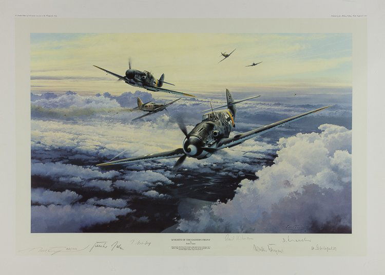 Signed & Numbered Print Of "Maggie Lee" Shipjack by John Morton Barber1 day LeftMichael Turner (UK,1934-2025) gouache paintingMar 15, 2026Wayne La Com (TWA Airplane - Lockheed Model 049) Signed Original WatercolorMar 14, 2026[WORLD WAR I] Fritz Mauk "Kameraden," Print3 days LeftWWII AVG Flying Tigers 31 Aviators & Flying Aces Signed Print Curtiss P-40 Warhawk5 days LeftPhilip West Night Heroes Dambusters Print SIGNEDMar 11, 2026Matt Hall Angels from Above Aviation Print SIGNEDMar 11, 2026Jack Fellows Strike Aztec Eagles War Print SIGNEDMar 11, 2026Ronald Wong Splash Two MiG-29s War Print SIGNEDMar 11, 2026Mid 20th Century Aviation ArtMar 10, 2026John Shaw Avengers of Philippines War Print SIGNEDMar 11, 2026Heinz Krebs Wild Children WWII Print SIGNEDMar 11, 2026Marcus Stewart Surprise at Asch War Print SIGNEDMar 11, 2026WWII German Luftwaffe Fighter Pilot Gunther Rall Knight’s Cross Signed Photo5 days LeftMichael Wooten, The Wedge of Iron Limited Edition Print, WWII Military Art with SignaturesMar 10, 2026WWII German Luftwaffe Fighter Ace Pilot Erich Hartmann Signed Photo Knights Cross5 days Left