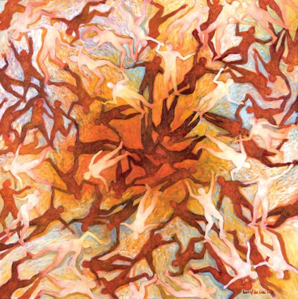 Pios Rodaman (FL,Brazil,b 1953) mixed media painting