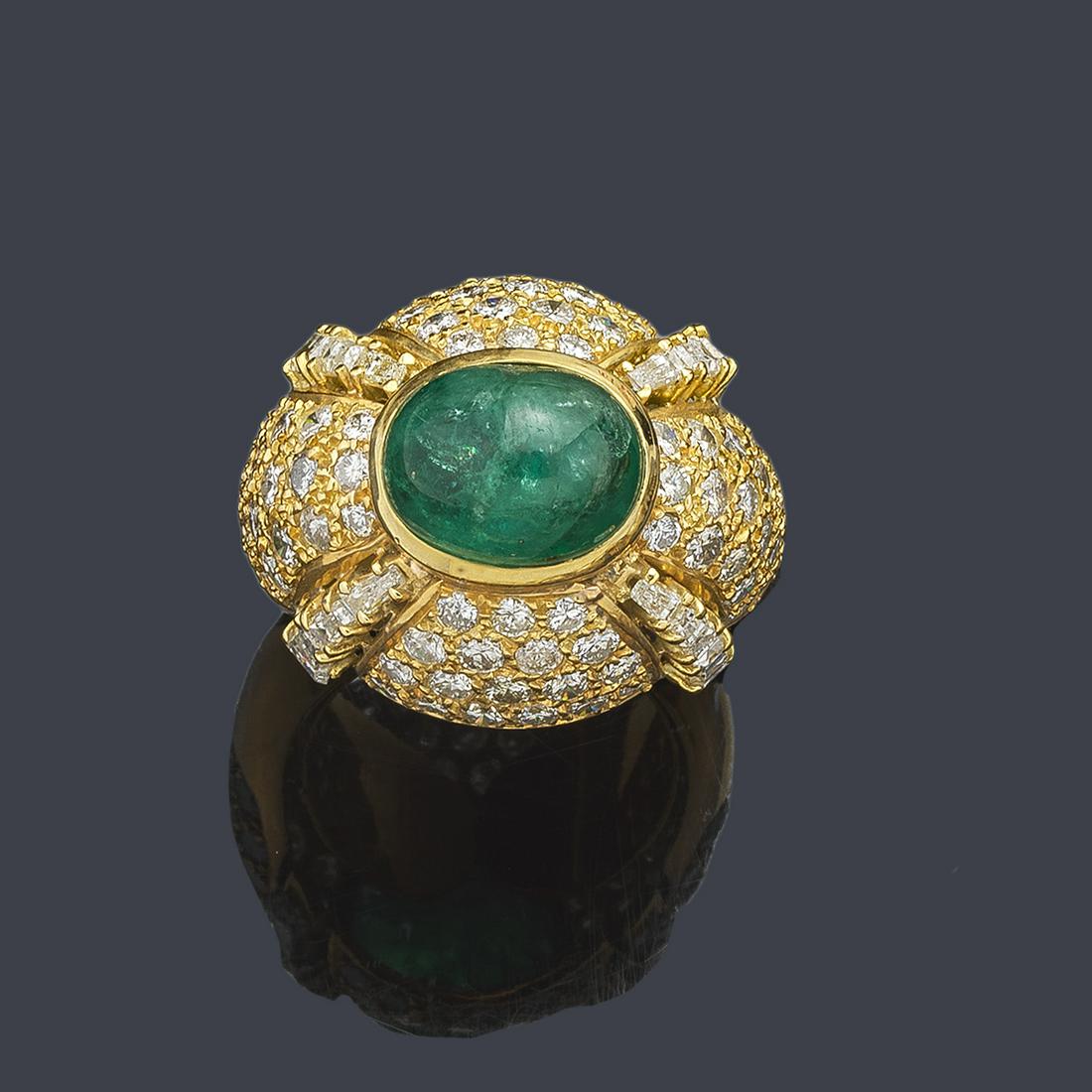 14K Gold 17.93ct Emerald 2.10ct Diamond Ring