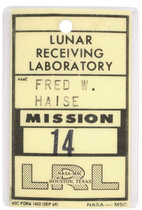 Lunar Receiving Laboratory (LRL) Badge. A 2