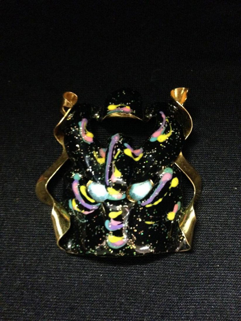 SoldLunch at Ritz Mask JewelryThere is a bracelet that measures 7" and mask are 1/2' to 1". There is also a pendant/pin 3' x 2 1/2. Condition is good see pictures. No refunds given.See Sold Price