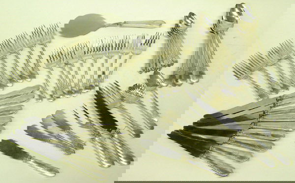 FRANCIS HIGGINS STERLING SILVER UTENSILS LOT OF 6Mar 08, 2026ENGLISH STERLING SILVER PLACE FORKS AND KNIVES, LOT OF 12Mar 04, 2026INTERNATIONAL SILVER CO. AND OTHER STERLING AND 0.950 SILVER FLATWARE AND SERVING UTENSILS, LOT OFMar 04, 2026Large lot of sterling silver and silver handled utensils. To include: Durgin serving fork and spoon5 days LeftTowle Sterling Silver Flatware Service4 days LeftLARGE ASSORTMENT OF SILVERPLATE UTENSILS & COIN SILVER FORK1 day LeftA Lunt sterling silver Eloquence flatware service, mid 20th century16 hrs LeftSTERLING SILVER FLATWARE BY REED & BARTON, MARLBORO PATTERN 5 DINNER FORKS, 6 DESSERT FORKS, 6Mar 15, 2026Gorham Sterling "Etruscan" Flatware Service2 days LeftTiffany & Co. Silver 'Faneuil' Flatware ServiceMar 15, 2026Gorham Sterling "Buckingham" Flatware Service2 days LeftAmerican Sterling Flatware Service2 days Left(82) PIECE REED & BARTON STERLING FLATWARE SERVICEMar 05, 2026Sterling Silver Flatware Service, Damask Rose Pattern4 days Left51 Pieces Assorted Sterling FlatwareMar 12, 2026Towle King Richard Sterling Flatware13 hrs Left