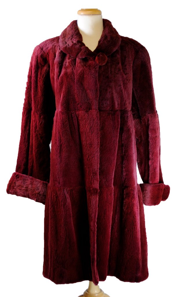 SoldVintage Red Purple Sheared Beaver Fur Coat R BARTHMANLength ( shoulder to hem) is 48.5", Chest is 48", Waist is 50", Sleeve Length is 25.5"See Sold Price